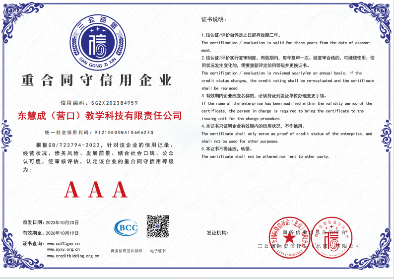 東慧成(營口)教學(xué)科技有限責(zé)任公司